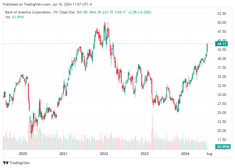 Net interest income, which represents the difference between what a bank earns on loans and what it pays depositors for their savings, is a critical metric for banks. For the second quarter of 2024, Bank of America's NII fell by 3% to $13.86 billion, aligning with StreetAccount estimates. The decline in NII was largely driven by the higher interest rates, which increased the bank's cost of borrowing and compressed its profit margins on loans. While the decline in NII was a concern, Bank of America's new guidance provided a glimmer of hope for investors. The bank projected that NII would rise to approximately $14.5 billion in the fourth quarter of 2024. This guidance confirmed earlier statements by executives that NII was likely to bottom out in the second quarter. As a result, shares of Bank of America rose by 4.4%, reflecting investor confidence in the bank's ability to navigate the current interest rate environment.