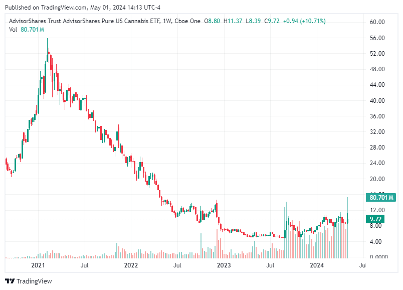 The DEA's announcement signals a significant departure from longstanding federal policy. Moving marijuana from a Schedule I to a Schedule III classification under the Controlled Substances Act would align federal policy more closely with the current scientific understanding and societal acceptance of cannabis. Schedule I drugs are categorized as substances with no currently accepted medical use and a high potential for abuse. In stark contrast, Schedule III substances are considered to have less potential for abuse and some accepted medical use. This reclassification would not legalize marijuana for recreational use at the federal level but would acknowledge the therapeutic benefits of cannabis, potentially unlocking new research opportunities and reducing the regulatory burdens associated with its study and medicinal application. The news of the DEA's proposed reclassification has already made waves in the financial markets, particularly among cannabis-related stocks. Companies like AdvisorShares Pure US Cannabis ETF ($MSOS), ETFMG Alternative Harvest ETF ($MJ), Canopy Growth Corporation ($CGC), Flora Growth Corp. ($FLGC), Akanda Corp. ($AKAN), and IM Cannabis Corp. ($IMCC) have seen increases in trading volume, as investors anticipate the positive implications of the DEA's proposal. These companies, ranging from ETFs that track the performance of the cannabis industry to firms specializing in the cultivation, production, and sale of cannabis products, stand to benefit from a regulatory environment that is more conducive to business growth and expansion. A reclassification could lead to increased investment in cannabis research, broader acceptance of medical marijuana across states, and potentially open up new markets for these companies.
