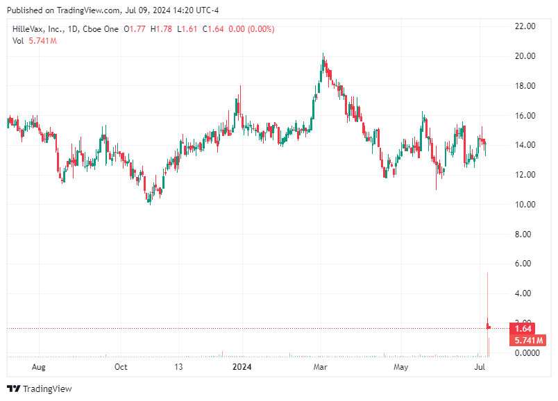 The announcement of the NEST-IN1 study results had an immediate and severe impact on HilleVax’s stock price, which dropped dramatically by 84% to close at $2.25. This sharp decline reflects the market's reaction to the disappointing clinical trial outcomes and the subsequent decision to halt the development of HIL-214 in infants. Despite the dramatic drop, there remains interest in observing whether the stock will recover, especially given that it had previously been valued at over $20 in the past year. Investors will likely be monitoring HilleVax’s future announcements closely, particularly regarding the development of HIL-214 and HIL-216 in adult populations.