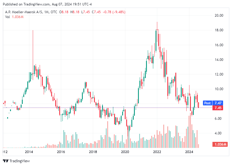 The global container-shipping market has experienced a surge in demand throughout 2024. This increase in demand is primarily driven by the gradual recovery of global trade activities post-pandemic and the continuous growth of e-commerce. Additionally, supply-chain disruptions have led to increased freight rates, which theoretically should benefit shipping companies like Maersk. However, these disruptions also bring about logistical complexities and additional costs.