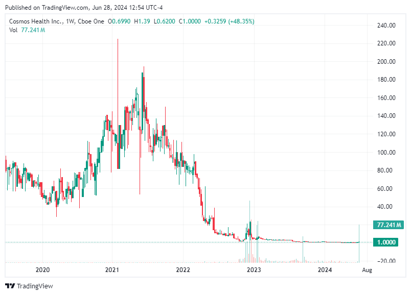 Founded in 2009 and headquartered in Nevada, Cosmos Health Inc. is a diversified global healthcare group. The company is involved in research and development and owns a broad portfolio of proprietary brands in the pharmaceutical and nutraceutical sectors. Some of its well-known brands include Sky Premium Life®, Mediterranation®, bio-bebe®, and C-Sept®.