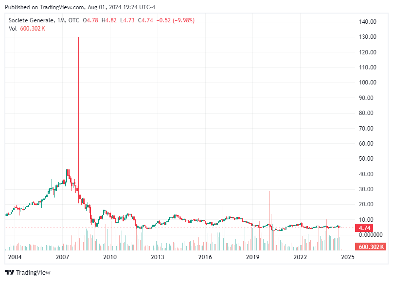 Conversely, Societe Generale's larger French rival, BNP Paribas, enjoys a more favorable valuation. BNP Paribas' ability to trade at almost 60% of its book value reflects greater investor confidence in its strategic direction and resilience.