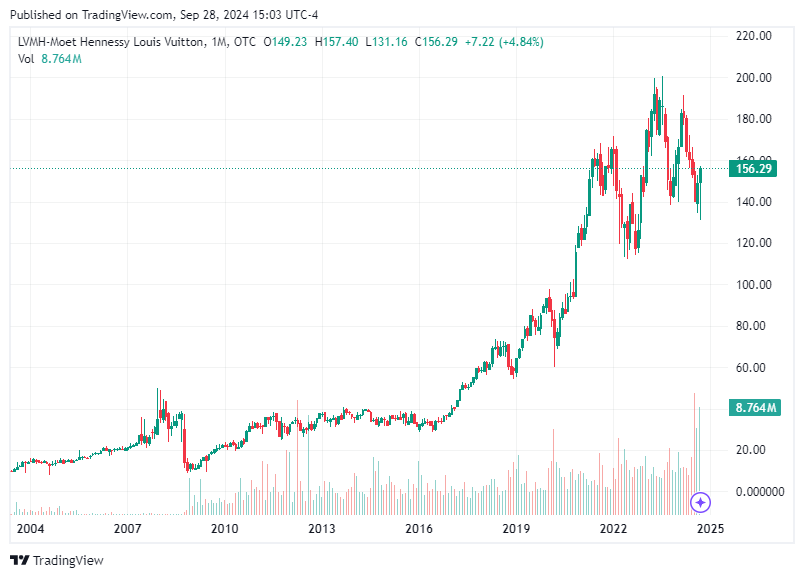 LVMH, founded in 1987 through the merger of Louis Vuitton and Moët Hennessy, has grown to become the world's largest luxury goods conglomerate, encompassing a portfolio of over 75 prestigious brands. The company's approach has historically revolved around acquiring stakes in high-end brands, thereby consolidating its presence across various luxury sectors, including fashion, cosmetics, and jewelry. This method has allowed LVMH to maintain a robust foothold in the market, consistently positioning itself as a leader in luxury innovation and consumer trends.
