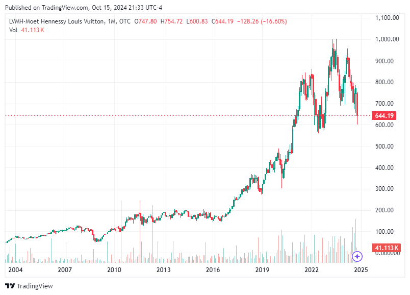 One area of potential growth highlighted by LVMH is the U.S. market, where there has been a slight improvement in categories like cognac, Tiffany, and fashion. This cautious optimism is based on a gradual normalization of market conditions and a less significant impact from aspirational spending, indicating a potential area for revenue stabilization.