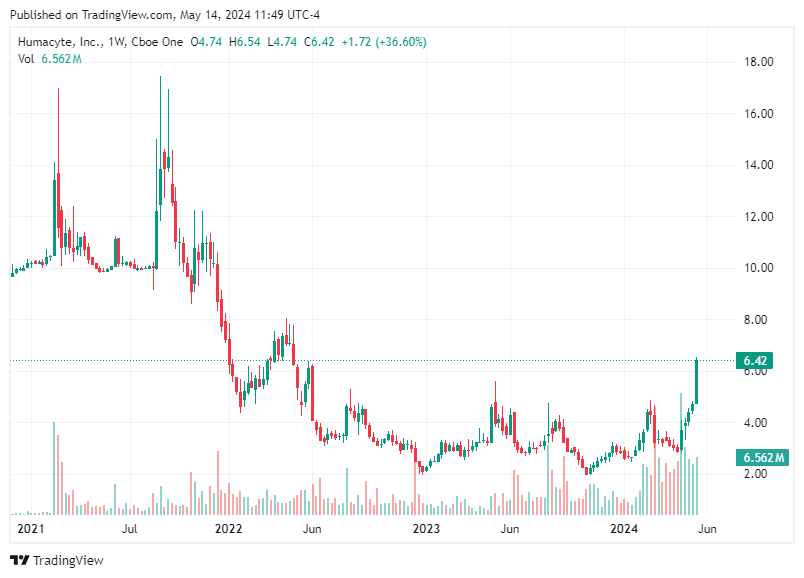 The recent endorsement by Benchmark Co., through analyst Bruce Jackson, reiterating a "Buy" rating on Humacyte with a maintained price target of $15, strongly suggests a positive outlook on the company's stock for this year. Currently trading at around $5.02, the significant gap between the current market price and the target suggests a bullish sentiment from Benchmark Co. regarding Humacyte's potential for growth and value appreciation. This endorsement could play a crucial role in shaping investor perceptions and confidence in Humacyte, potentially leading to increased stock demand and a subsequent rise in its market price. Given the nature of the biotech industry, where stock prices can be notably volatile and influenced by clinical trial outcomes, regulatory approvals, and strategic partnerships, such an optimistic projection from a reputable financial services firm might catalyze heightened investor interest and speculative investment in HUMA. If Humacyte continues to make progress in its clinical trials and moves closer to commercialization of its products, the company could see a substantial increase in its stock valuation. Furthermore, as awareness grows about the potential of regenerative medicine to offer solutions to longstanding challenges in healthcare, Humacyte could find itself well-positioned to capitalize on these emerging opportunities, making it a potentially attractive proposition for investors looking towards the future of medicine.