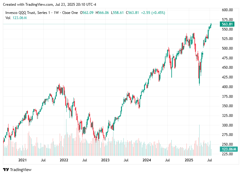 The stock market soared to new heights today, with the S&P 500 closing at an all-time high of 6,358.91 (+0.8%). Optimism surrounding trade deals with Japan and the EU, coupled with strong earnings reports, fueled the rally. The Nasdaq Composite is now up +8.9% YTD, while the Dow Jones Industrial Average has gained +5.8% YTD.