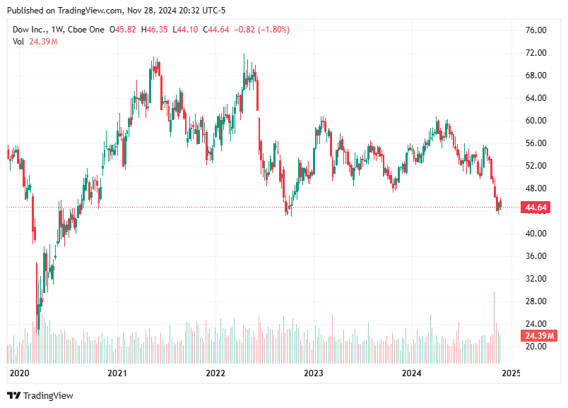 The Dow Jones Industrial Average ($DJI) reached an all-time high but slipped due to weakness in the tech sector. Shares of Dell ($DELL) and HP ($HPQ) dropped over 10% following disappointing earnings. Nvidia ($NVDA) and Microsoft ($MSFT) also saw declines, pulling down the Philadelphia Semiconductor Index ($SOXX) by 3%. Despite this, the S&P 500 ($SPX) is on track for its best monthly gain in a year.