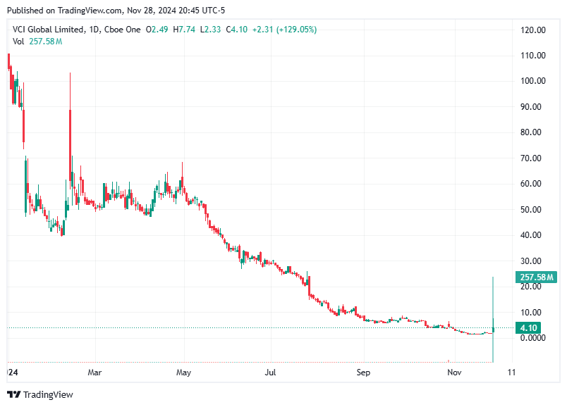 VCI Global ($VCIG) experienced a dramatic rise of 103% today, taking the stock price to $3.62. This surge comes after the company received a conditional letter of award for a substantial $24 million AI contract. This news positions VCI Global as a player to watch in the artificial intelligence sector.