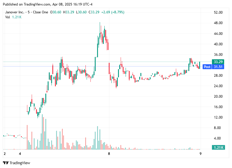 The alert for $JNVR was sent at 9:16 AM EST. This stock exhibited significant percentage growth during the trading day, with active movements that highlighted its high-risk classification and potential for day or swing traders.