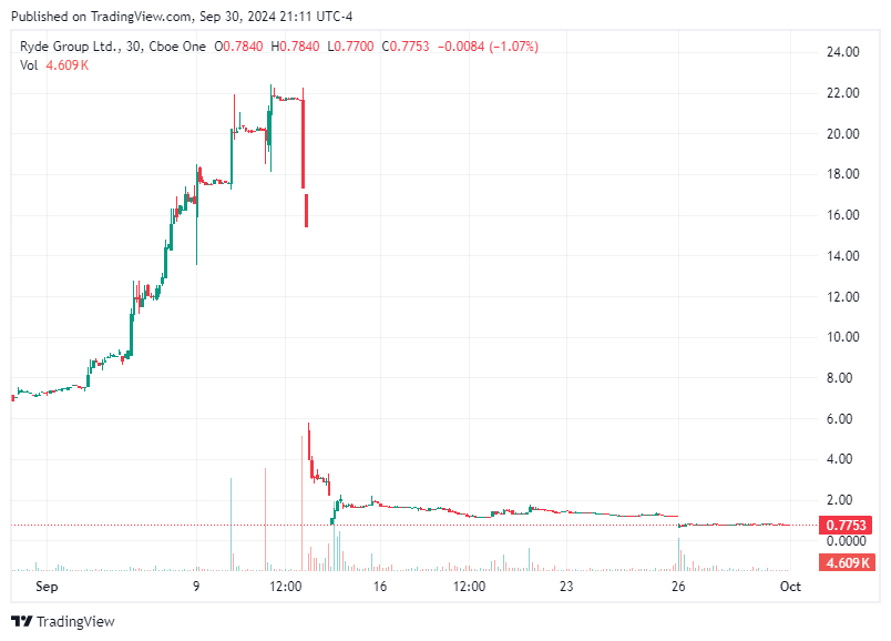 Finally, $RYDE was alerted at 2:34 PM on 9/12/24, with a significant decrease of 84.13%. Entry specifics are accessible for members.