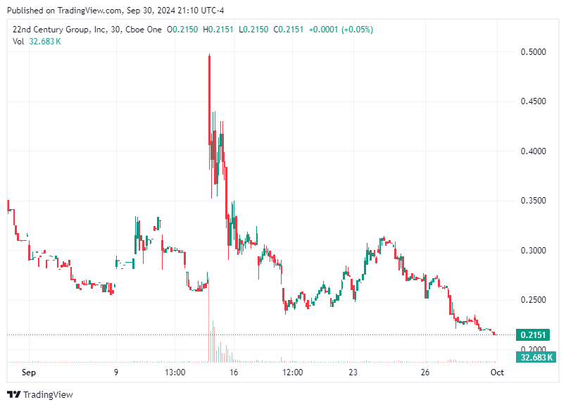 At 4:05 PM on 9/12/24, $XXII experienced a 5.18% decrease. Entry data is available to members.