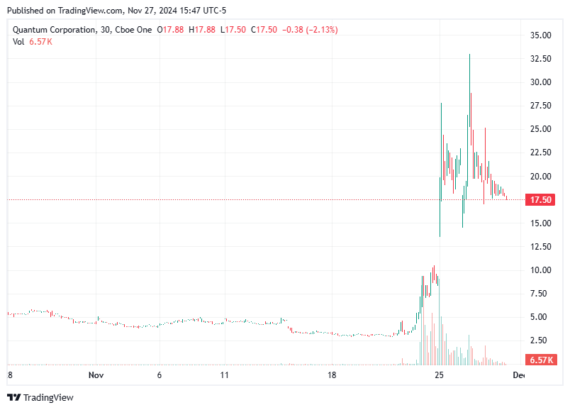An alert for $QMCO went live at 12:05 PM. The stock faced substantial challenges during the session, closing at -20.85%.