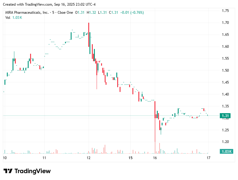 The alert for $MIRA came late in the day. The stock experienced a slight decline, marking a low of (-) 4.83%.
