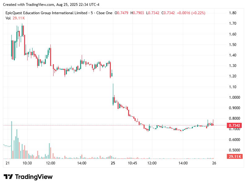 The alert for $EEIQ was sent at 7:01 AM on August 22, 2025. Following the morning alert, the stock experienced significant upward momentum throughout the trading session, ultimately achieving a notable gain of 128.44% by market close. This high-volatility stock demonstrated strong bullish behavior after the early morning signal.