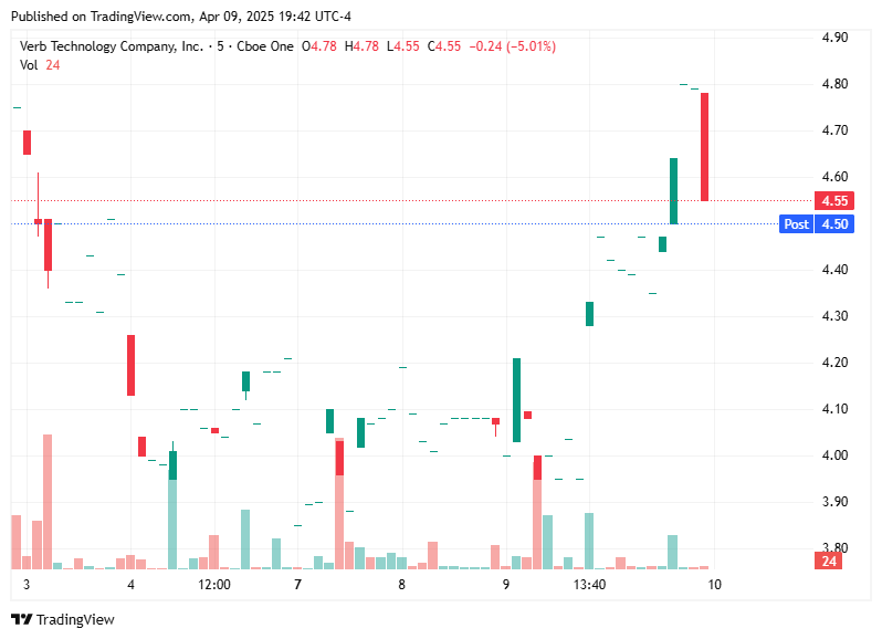 The final alert of the day was for $VERB at 4:28 PM. The stock experienced steady movement and closed with a gain of +0.99%.