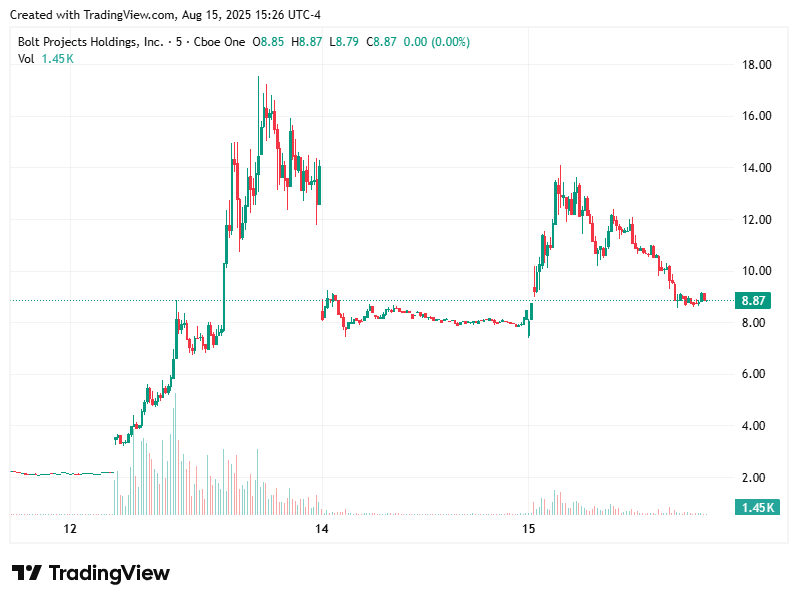 The first alert for BSLK came at 7:30 AM on August 13th, setting the tone for what would become an exceptional trading day. Following the alert, the stock demonstrated remarkable momentum throughout the session, climbing steadily as volume increased. The price action showed sustained buying pressure, with multiple waves of accumulation driving the stock higher across several hours of trading.