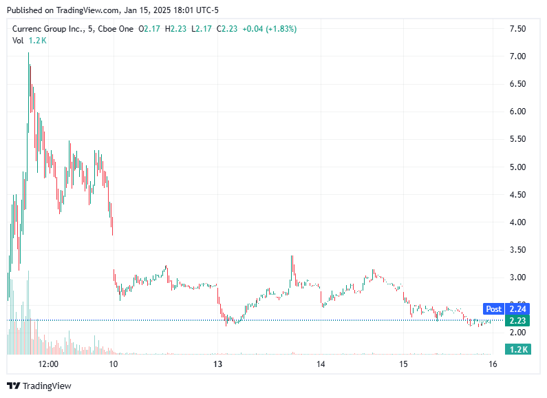 The alert for $CURR was sent at 7:23 AM. Throughout the day, the stock displayed substantial momentum, climbing to a remarkable 182.01% gain.