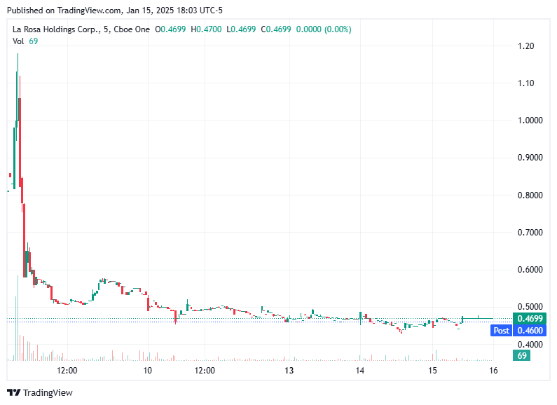 For $LRHC, alerted at 10:01 AM, the stock fell significantly, closing with a 30.16% decline.