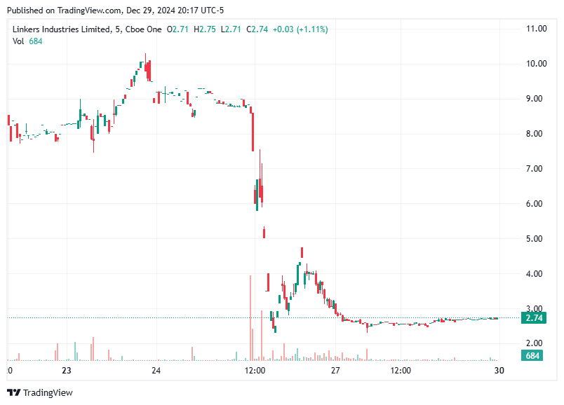 Mid-afternoon trading exhibited a steep decline for $LNKS after its alert, emphasizing the risks present in market participation.