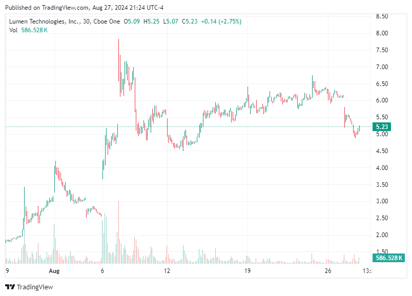 At 10:58 AM on the same day, $LUMN was highlighted, capturing considerable attention with a rise of 93.05%. The stock showed a dynamic movement, aligning with our expectations of increased trading volume.
