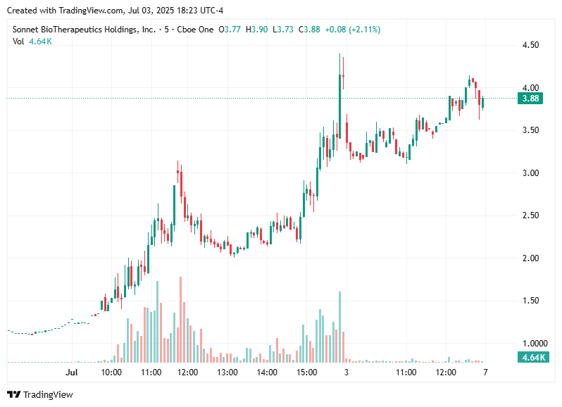 $SONN experienced significant movement after the alert was sent, with a remarkable increase of 242.97% by the end of the day. Members monitoring this stock observed its high volatility, making it a potential candidate for both day and swing trading.