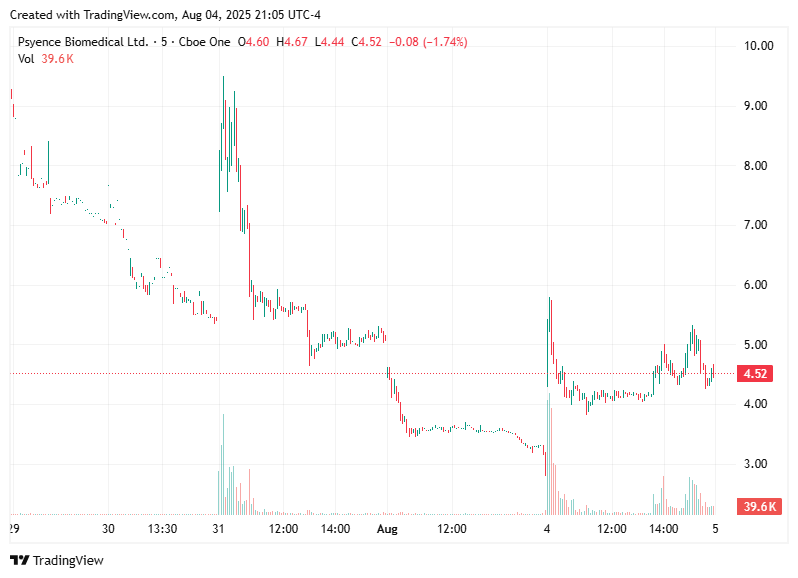 $PBM also followed a downward trajectory after its alert, ending the day with a percentage change of -53.08%, following a high earlier in the session.