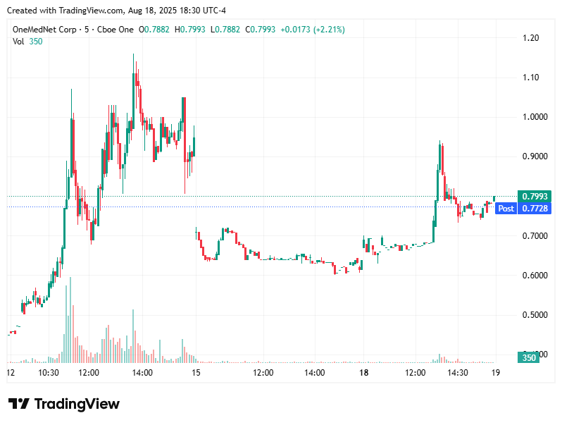 After the alert was sent, $ONMD experienced significant movement, reaching a high of 99.69% gain during the day. This stock was flagged as a potential day/swing trade opportunity.