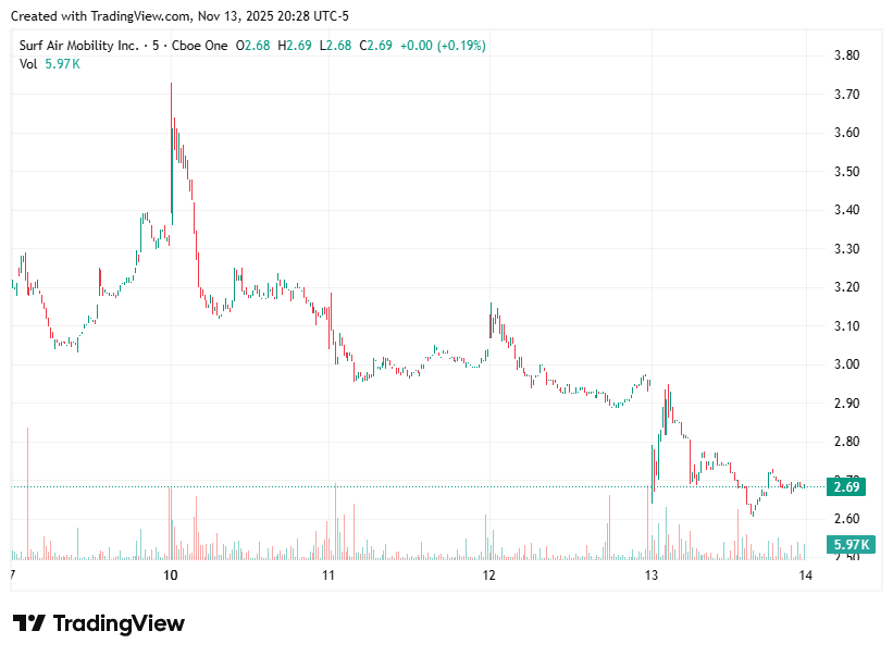 The alert for $SRFM went out early in the day at 8:43 AM. Throughout the trading session, the stock’s price fluctuated, experiencing a dip of (-) 5.42%.