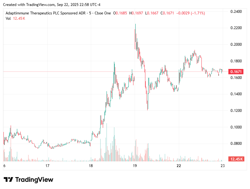 The signal for ADAP was sent at 8:32 AM. The stock traded lower throughout the day, experiencing a decline of 9.75%.