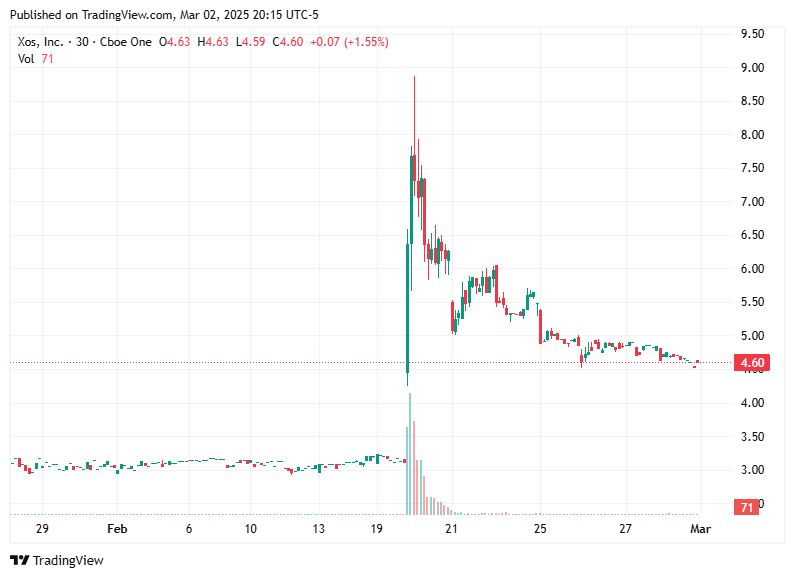 The alert for $XOS was sent at 10:00 AM. Following the alert, the stock displayed notable intraday movement, reaching a high before stabilizing as the session progressed.