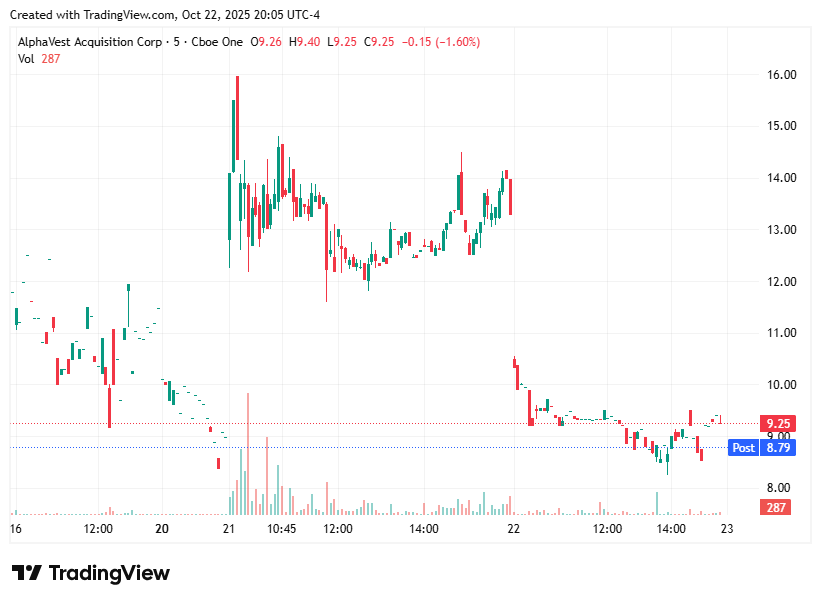 An alert for $ATMV was sent at 4:04 PM in the after-hours session. Following the signal, the stock experienced a significant price drop in after-hours trading.