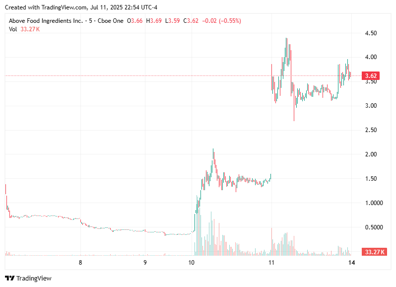After the alert, $ABVE surged by 335.39%, climbing steadily throughout the day and reaching a high point. This stock was flagged for both day and swing trade opportunities.