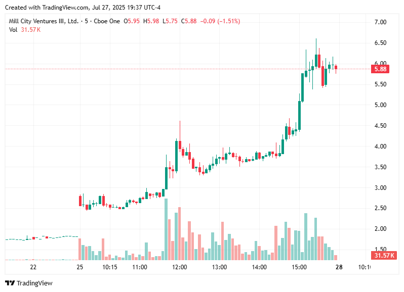 $MCVT saw significant movement after the alert was sent, reaching a high of (+) 218.92% during the day. This stock was flagged as a potential day/swing trade opportunity.
