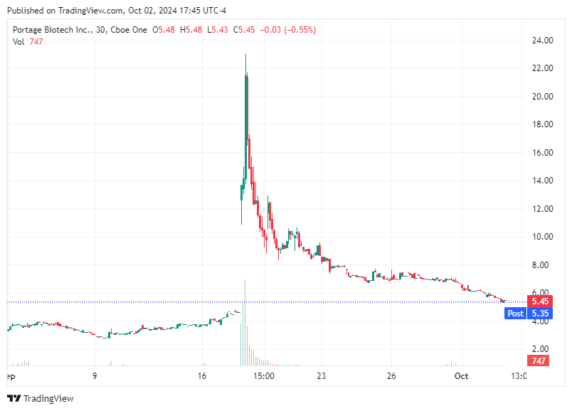At 7:07 AM, Portage Biotech Inc. ($PRTG) was alerted and recorded a significant rise of 118.76% during the day.