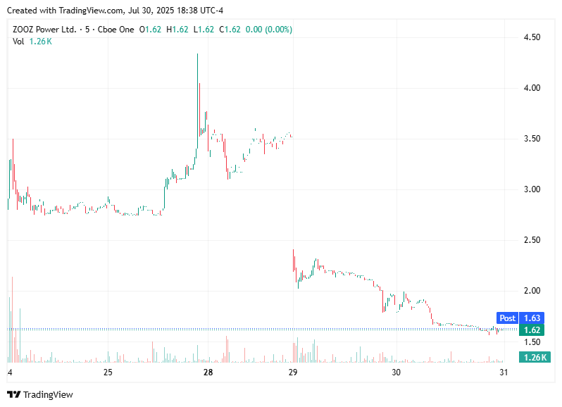 After the alert, $ZOOZ showed a high of -45.58%. The stock exhibited significant downward performance throughout the session.