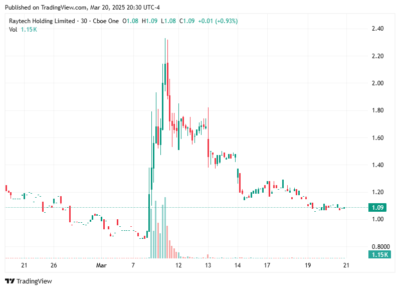 The alert for $RAY was issued at 10:04 AM. Following the alert, the stock experienced significant movement, achieving an impressive peak of +94.25% during the day. It was noted for its potential in both day and swing trading strategies.