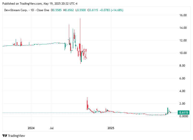 The final alert was for $DEVS at 4:13 PM. The stock's performance indicated a decline, closing with a change of -24.50%.