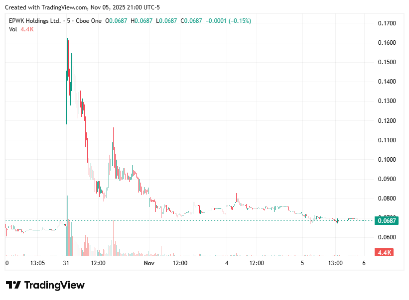The signal for $EPWK was sent at 9:37 AM. Following the alert, the stock experienced significant upward movement, ultimately recording a gain of 29.15% by the end of the trading session.