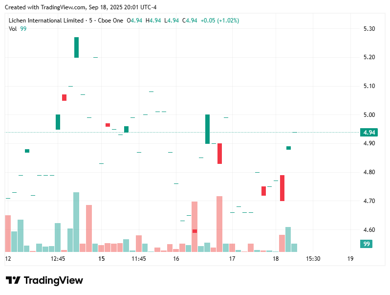 Finally, $LICN was alerted at 7:13 AM and experienced a high of -4.12%. The stock showed downward movement throughout the trading session.