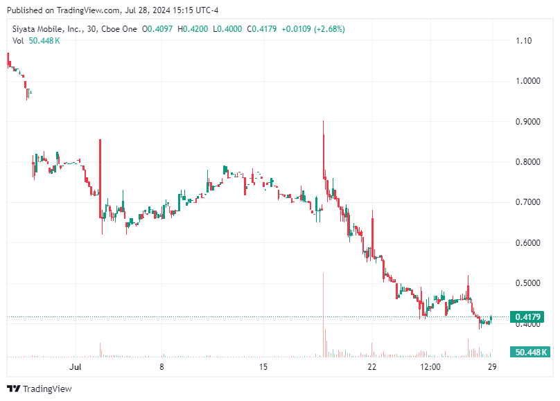 After the alert at 8:45 AM, $SYTA declined by 13.06%. The stock's performance was tracked within the parameters of the day/swing trade strategy through the trading hours.