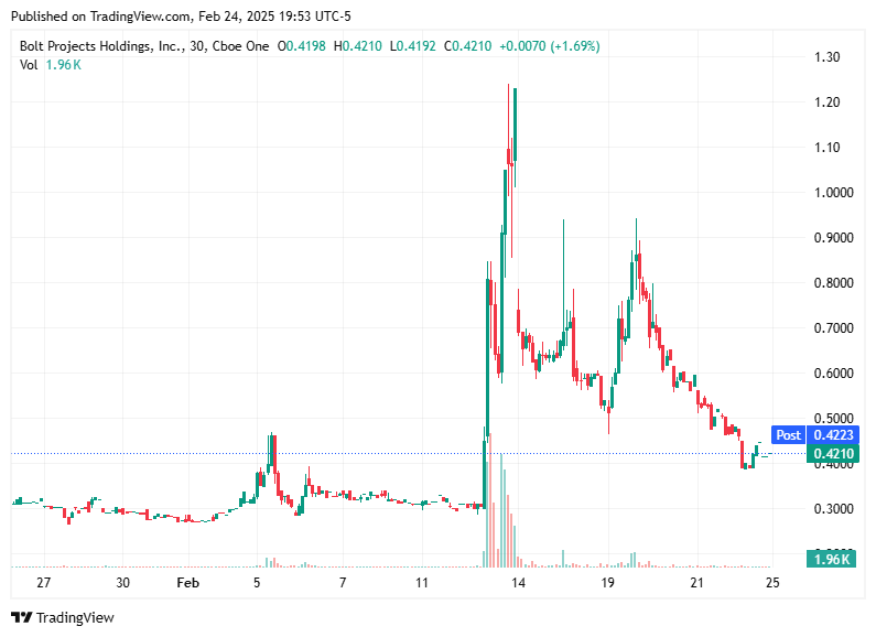 The alert for $BSLK was sent at 2:27 PM. Following the signal, the stock surged dramatically, showing significant volatility throughout the day as traders reacted to its price shifts.
