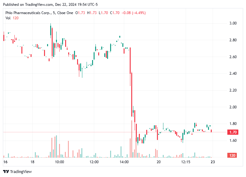 The 7:52 AM alert for $PHIO tracked significant downward movement during the day.