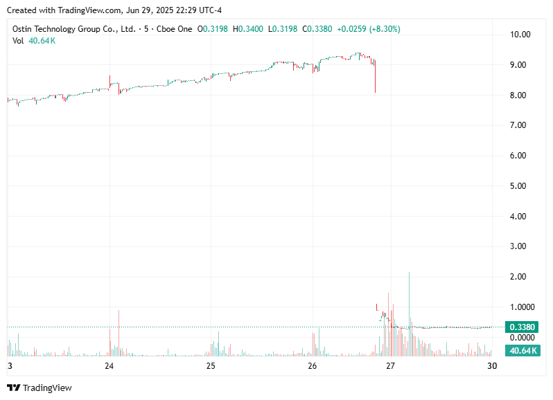 The final stock, $OST, was alerted just before market close. Despite the late notification, $OST saw substantial activity, though its directional movement reflected a significant decline, closing with a change of -93.90%.