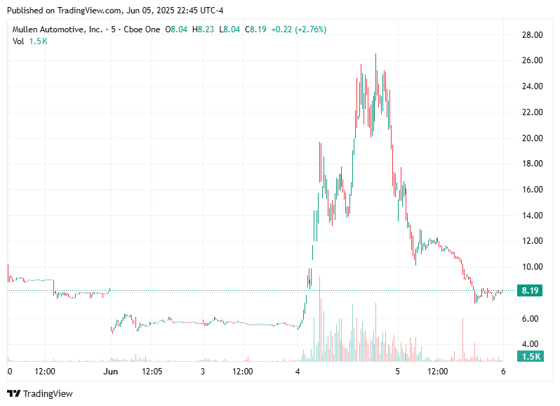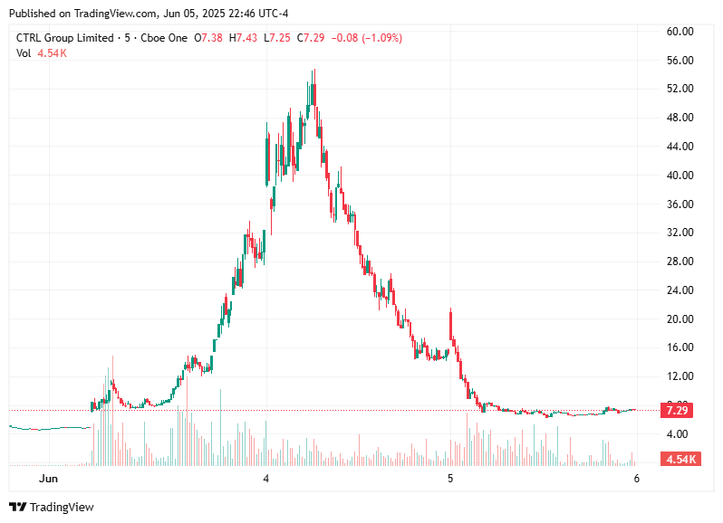 The stock $MCTR experienced a significant decline, closing the day with a 53.19% drop.