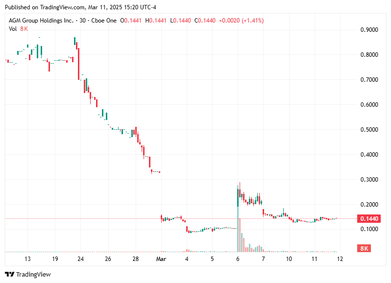 An alert for $AGMH was sent at 9:06 AM. The stock faced significant downward pressure following the signal, closing the day with a drop of 31.54%.