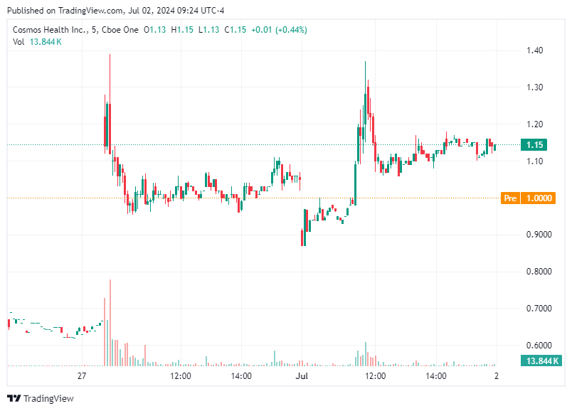 Alert Time: 11:43 AM Cosmos Health Inc. posted a 5.77% high during the day, indicating moderate trading potentials.