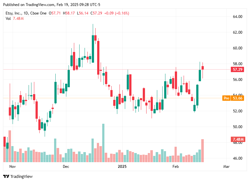 Etsy saw an 8% drop in premarket trading after falling short of Wall Street expectations for its holiday quarter revenue and gross merchandise sales. The weak results point to softer consumer spending on gifts and handcrafted items.