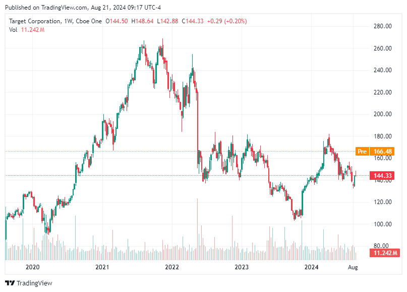 Target has been making impressive strides, as reflected in its robust second-quarter earnings report. The company posted a notable 36.6% increase in operating income compared to last year, driven by sales growth and improved gross margins. Analysts are bullish, with an average "Buy" rating and a 12-month price forecast pointing to a potential rise of over 20%. Target's earnings per share (EPS) for Q2 2024 surpassed expectations, bolstering investor confidence and likely enhancing stock performance. Further solidifying its promising outlook, Target has raised its fiscal year 2024 earnings forecast, showcasing confidence in its continued success. For short-term traders, key levels to monitor include an upside above $165.98 and downside support at $163.21.