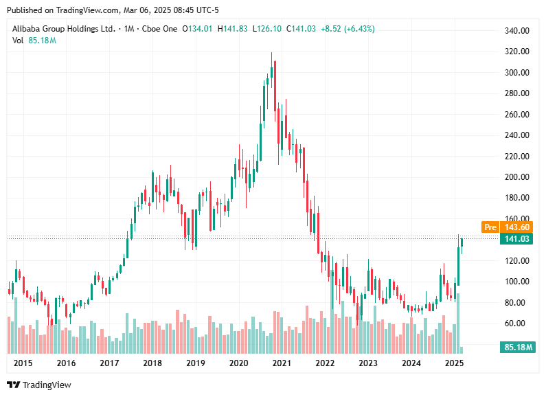 Economic Growth Support: Following reassurances from China on its 2025 economic growth target of 5%, Alibaba's stock saw an 8% surge. Efforts to bolster domestic consumption remain a tailwind for the company.