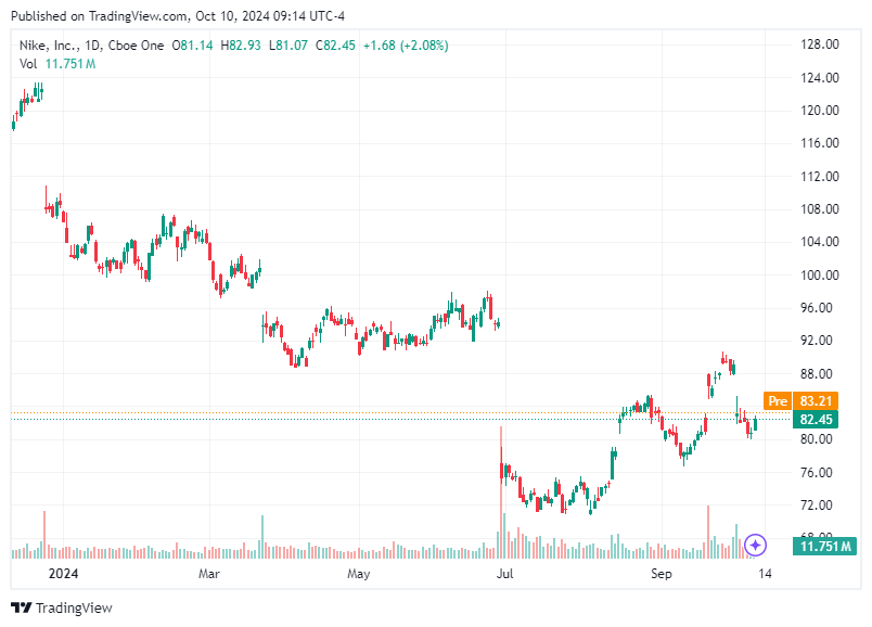 Nike is regaining momentum following the announcement of an aggressive stock buyback strategy, a response to a summer slump. Complementing this move, Truist Securities recently upgraded Nike from Hold to Buy, raising the price target to $97, reflecting confidence in the company's future performance. Despite past declines, these strategies suggest a positive long-term outlook for Nike. Investors may watch for short-term upside above $83.70 and downside below $82.50.